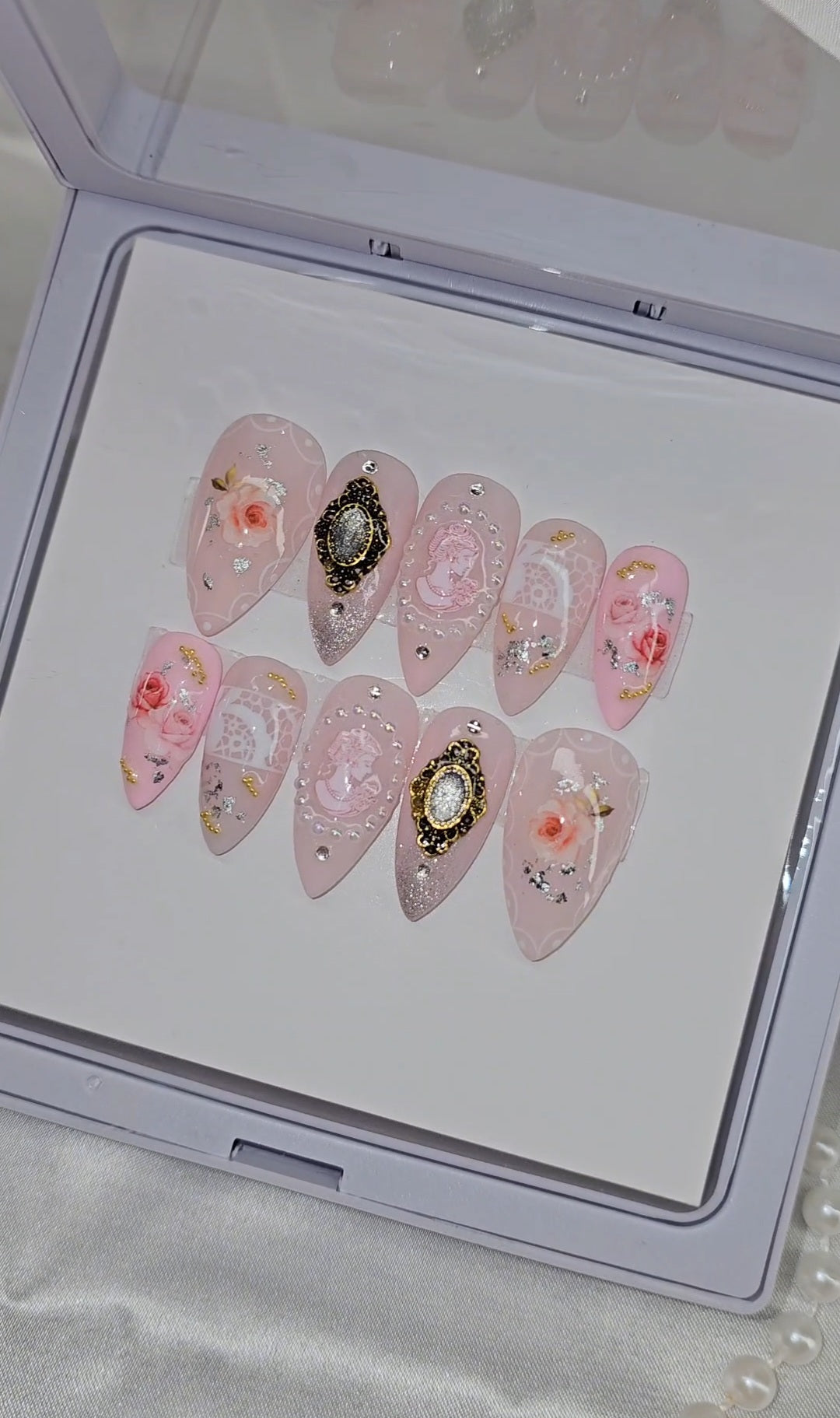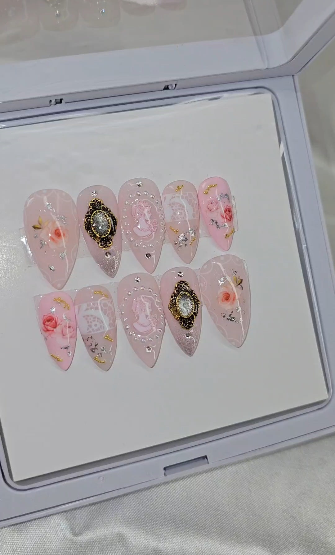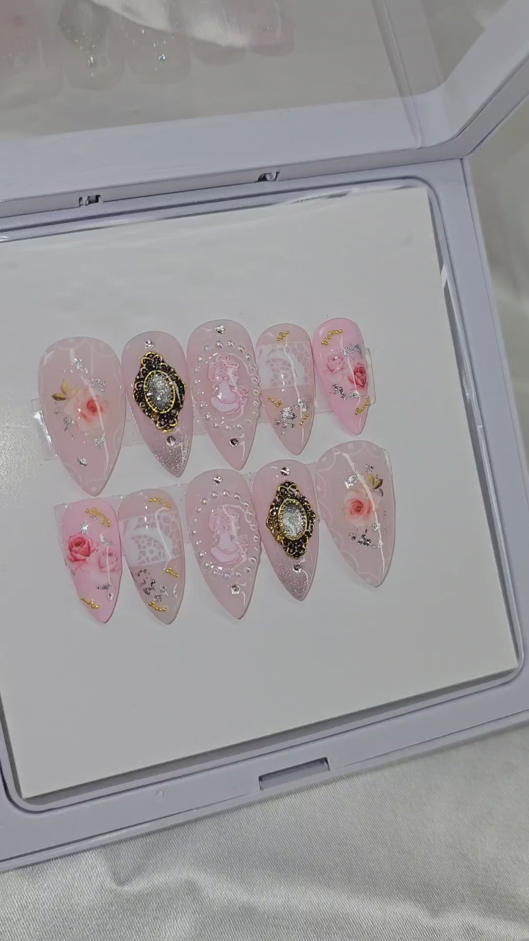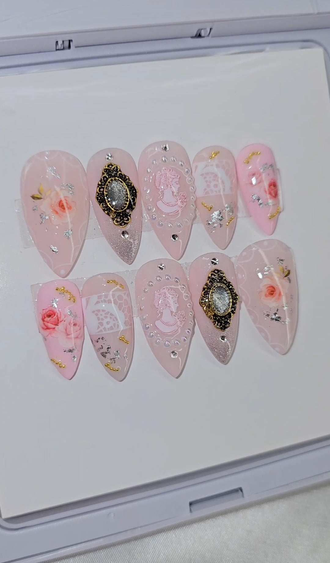 This set contains a 10-piece set of false nails